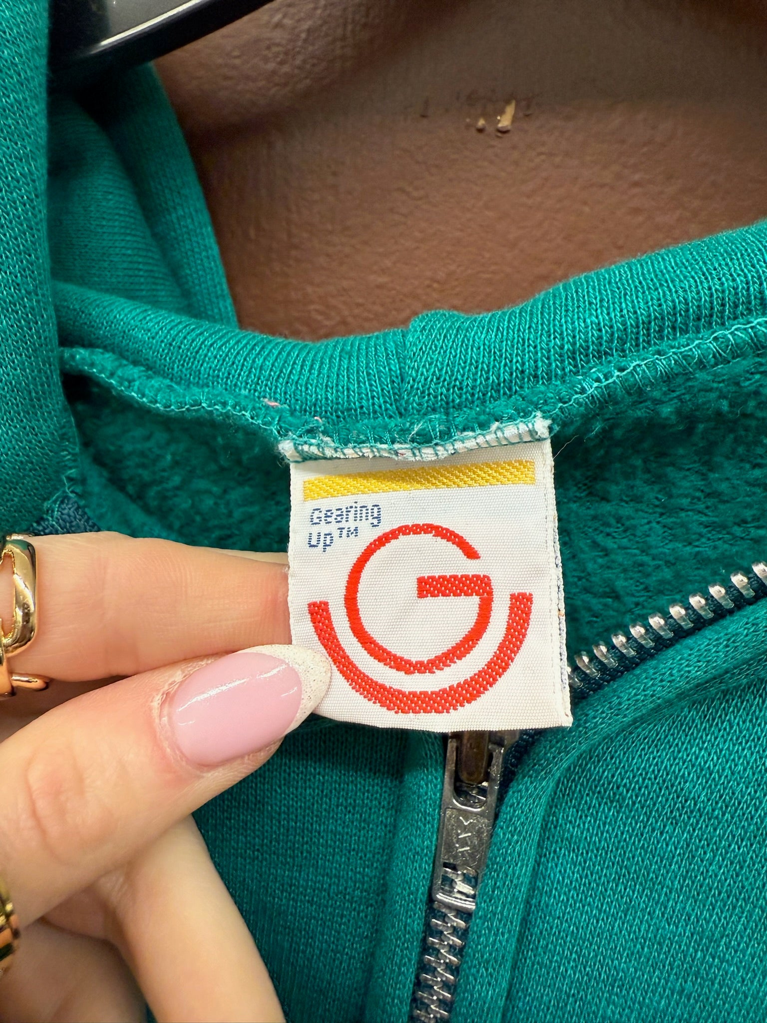 Vintage teal green zip up unisex hoodie.