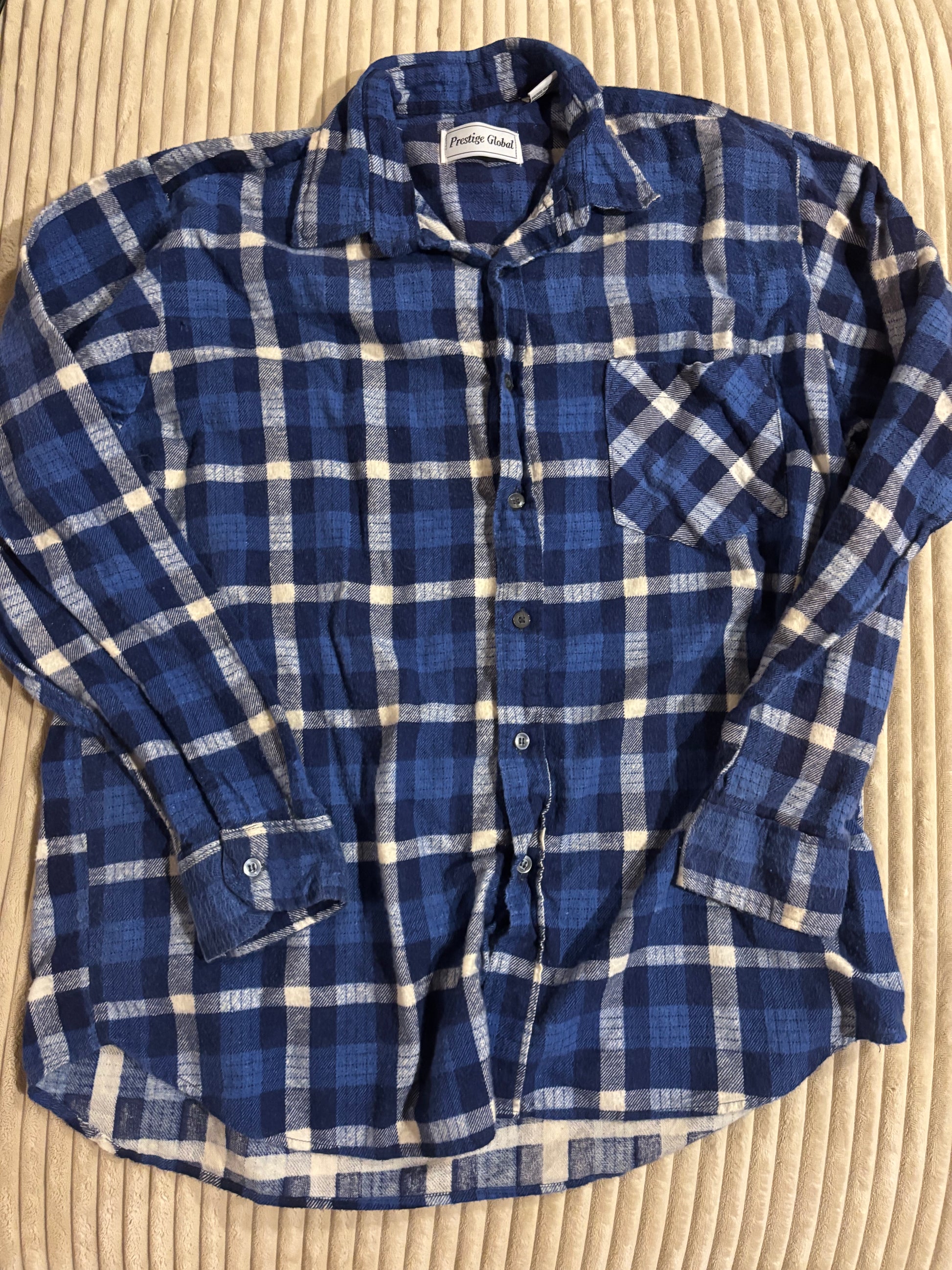 Never been worn 1990’s blue and ivory pattern button up flannel