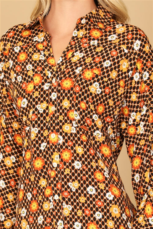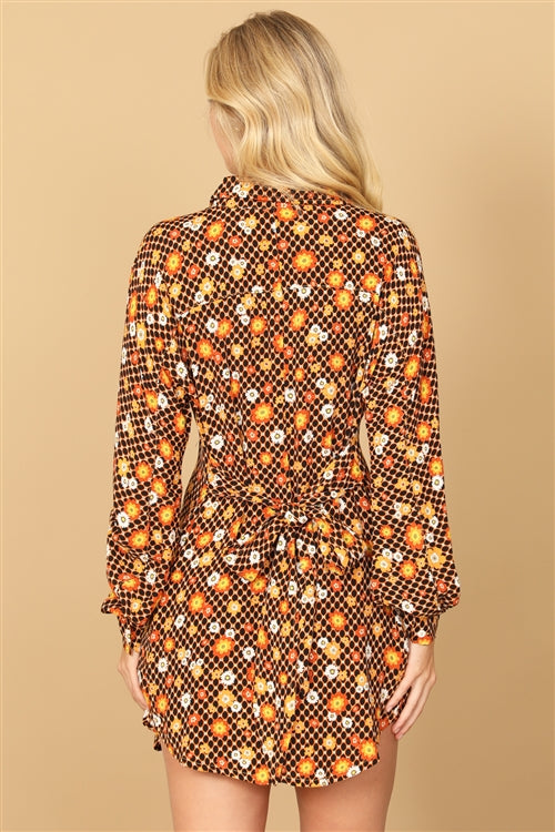 Black honeycomb print floral dress.
