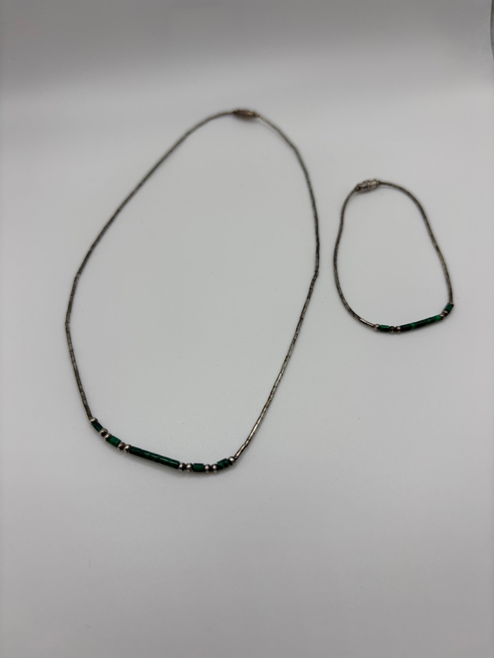 Petite strand with green/turquoise tone beads with matching bracelet.