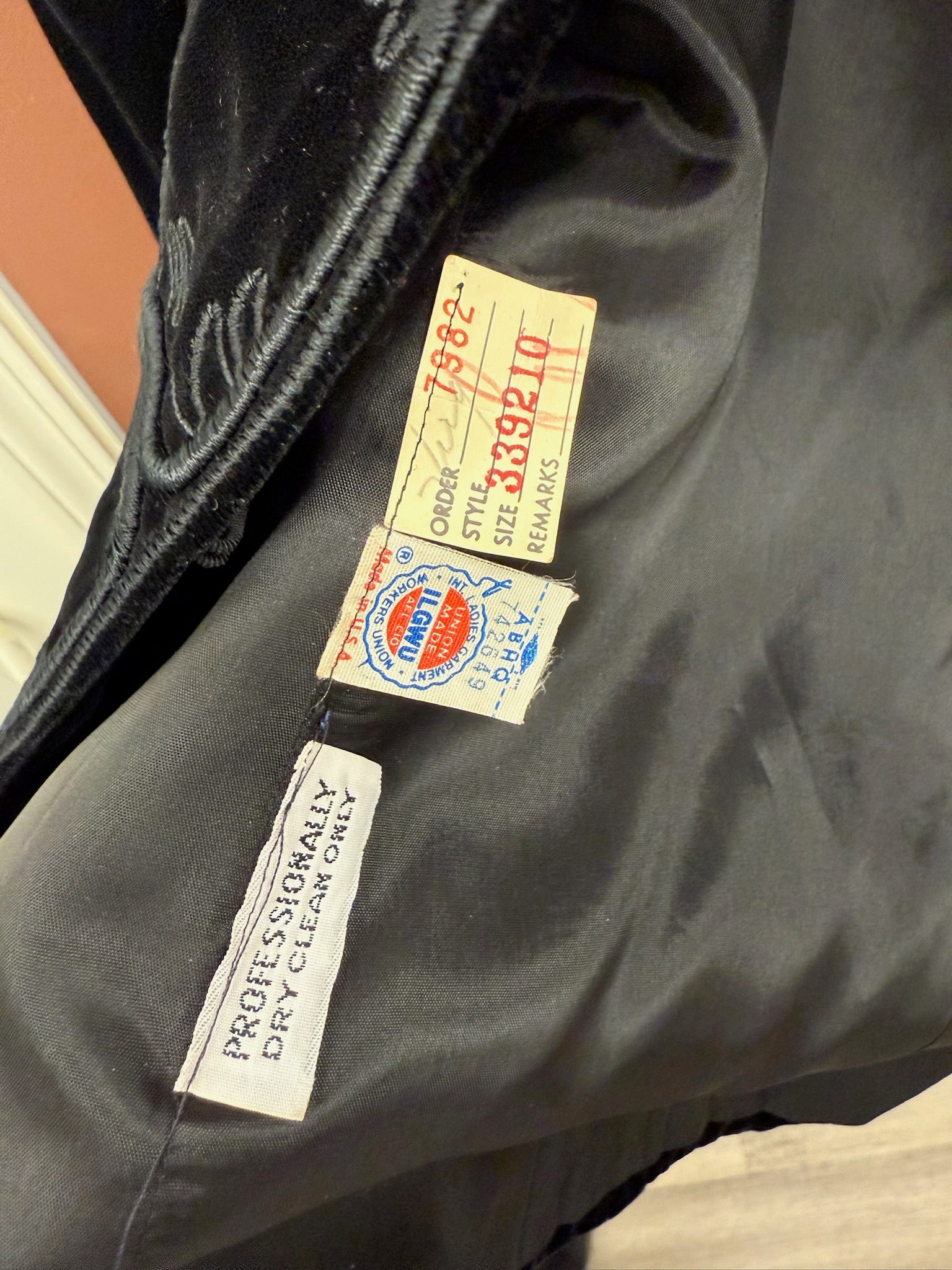 Beautiful black velvet jacket with scroll design by designer, Gloria Sachs